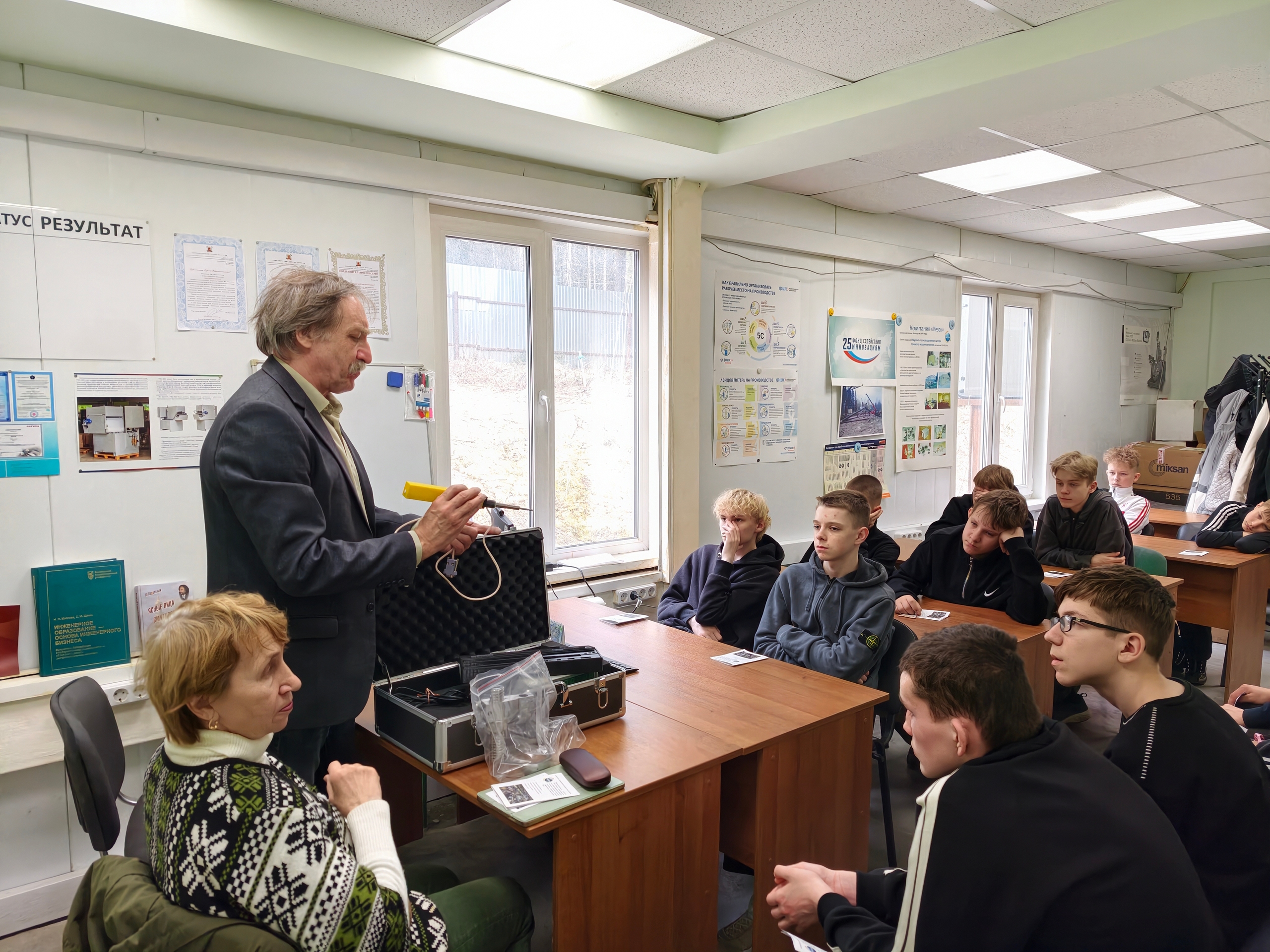 Учащиеся заинтересованно пообщались с инженерами, ознакомились с задачами и условиями их труда. Узнали, что инженеры «Мезона» занимаются разработкой и сопровождением уникальных экспериментальных образцов, используемых как в традиционных, так и в формирующихся отраслях машино- и приборостроения.